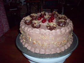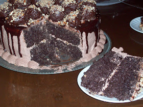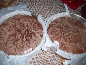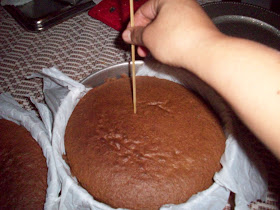 aqui ya sacamos del horno, vean que bonito esponjan ahora desmoldamos, retiramos el papel encerado, estando aun tibio regresamos al molde al que previamente le pusimos un plastico, para no batallar al desmoldar, picamos con un cuchillito o con un palito de brocheta( yo prefiero esto ultimo) licuamos los ingredientes del baño de leche, aproximadamente rinde un litro, asi que agregamos dos tazas de la mezcla a cada capa de pan aqui ya estan con el baño, ahora dejamos enfriar y llevamos a refrigerar bien cubierto, minimo 4 horas, a mi me gusta mas de la noche a la mañana, para que absorva bien la leche desmoldamos ( me falto esta foto)y rellenamos con crema y nuez, yo decore con cerezas y trufas de chocolate aqui esta su rebanada, vean que alto queda, y como se ve bien mojadito el pan, mmmm queda delirico espero que les haya gustado, y gracias al señor Bobby por tan buena receta, se parece mucho a una receta que yo tengo de pastel de tres leches, por eso me latio tres leches jurasico version chocolate Y AQUI SU REBANADOTA ESTE ES EL TRES LECHES JURASICO, VERSION CHOCOLATE...AQUI MISMO VOY A EDITAR PARA DEJARLES LA RECETA ...SIEMPRE HE PENSADO QUE LAS RECETAS SE PUEDEN MEJORAR...Y CREO QUE MEJORE LA RECETA DEL TRES LECHES DE CHOCOLATE QUE YA LES HABIA COMPARTIDO.... LES DEJO LOS CAMBIOS QUE LE HICE AL JURASICO...QUE POR CIERTO ME ENCANTO COMO ESPONJO EL PAN, VEAN EL TAMAÑO DE LAS CAPAS...... Y MUCHISIMAS GRACIAS ...LAS QUIEROOOOOOO ...AQUI ESTA LA RECETA: RECETA CORREGIDA Y AUMENTADA DE TRES LECHES DE CHOCOLATE ingredientes: 1 y 2/3 de taza de harina para todo uso( recomiendo la diluvio) 1 sobre de maicena de chocolate 4 cucharadas de cocoa 1 cucharadita de bicarbonato de sodio 3 cucharaditas de polvo de hornear 1 pizca de sal ( ESTOS INGREDIENTES CERNIRLOS DE 3 A 5 OCASIONES...YO PREFIERO 5 VECES, JEJEJE) 8 HUEVOS SEPARADOS CLARA Y YEMA 1 1/3 DE TAZA DE AZUCAR 2 CUCHARADAS DE VAINILLA 1/2 TAZA DE LECHE CON EL JUGO DE 1 LIMON BAÑO DE LECHE: 1 LATA DE LECHE CONDENSADA 1 LATA DE LECHE EVAPORADA 1 LATA DE MEDIA CREMA 1/3 DE TAZA DE JARABE DE CHOCOLATE HERSHEYS 3 CUCHARADITAS DE COCOA ( SI LES GUSTA MAS MOJADO PUEDEN AGREGAR UNA TAZA DE LECHE DE CHOCOLATE, COMO LA DE HERSHEYS, O CHOCOLALA...A MI ASI COMO ESTA ME PARECE PERFECTO...PERO HAY MUCHAS AMIGUIS QUE LES GUSTA BIEN EMPAPADO) si se fijan son casi los mismos ingredientes que el tres leches de chocolate que les habia compartido, solo aumente los huevos a 8, y agregue la maicena y otrospequeños cambios....o sea es mi tres leches jurasico , pero con estos ingredientes para hacerlo de chocolate....y cual es la diferencia?.....pues que queda un pastel mas grande , en lugar de hornear en dos moldes de 8, lo hornee en dos de 10 pulgadas, y vean la altura, de hecho se van a sorprender con todo lo que esponja, este se tardo en hornearse de 35 a 40 minutos, a 180 grados centigrados amiguita cecy 71, ya esta el experimento...si funciona, jejejeje, si se le puede poner la maicena al tres leches...bravoooooo!!!!! aqui les dejo los enlaces de los tres leches y el de las trufas PASO A PASO TRES LECHES JURASICO PASO A PASO TRUFAS DE CHOCOLATE POR PATTYGARCIA AHI ESTA EL PROCEDIMIENTO PARA EL PASTEL, PARA LAS TRUFAS COMO ACÁ NO SE CONSIGUE EL COFFEMATE LIQUIDO...YO LAS HICE CON LECHERA DE LA SQUEEZE ESPERO LES SIRVA LA INFORMACION