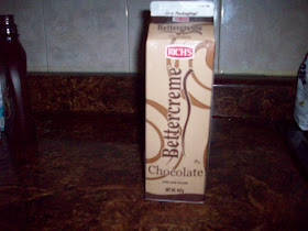 crema para decorar, yo utilice el bettercreme chocolate de richs, pero pueden utilizar coolwipp, o wip topping, de la crema batida normal blanca, contrasta muy bien con el pastel d chocolate