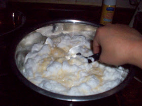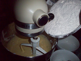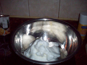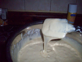 AGREGAS LOS INGREDIENTES SECOS POCO A POCO , ALTERNANDO CON LA LECHE,hasta acabrar con harina, HECHA ESTA MEZCLA AHORA.......