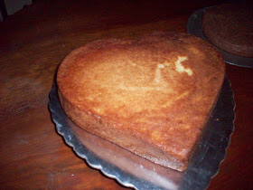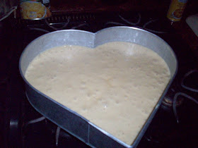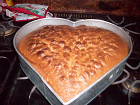 HORNEAS EN UN MOLDE DE 12 O DOS DE 10", PARA QUE ESPONJE MEJOR,YO LO HICE EN UNO DE 12" EN FORMA DE CORAZON, MOLDE ENGRASADO Y EMPAPELADO DE PREFERENCIA PARA UN FACIL DESMOLDADO
