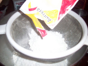 ahora si cernimos el harina, la maicena o pudin y el polvo de hornear...directo al bowl
